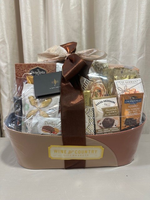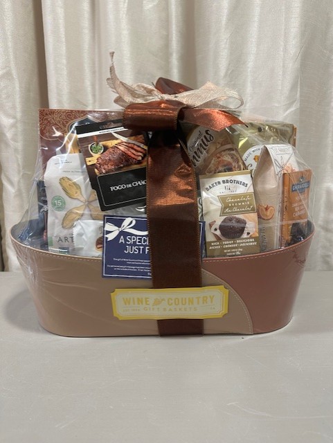 Wine & Country Basket with $200 Fogo De Chao Gift Card. Wine and Country Gift Basket includes assorted cookies, chocolates, fudge, and crackers.