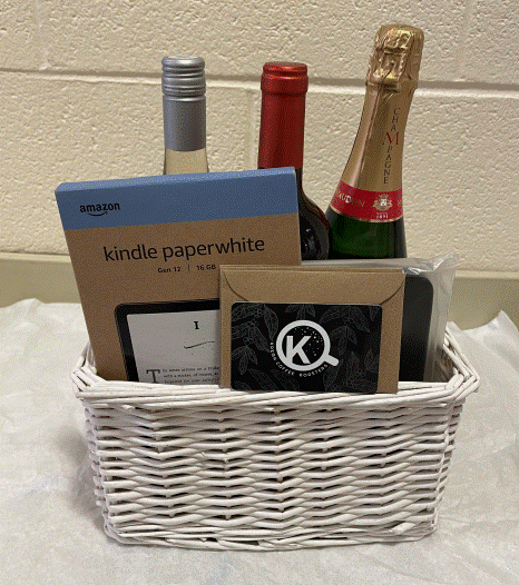 Krema gift cards totaling $75 plus a Kindle Paperwhite and three bottles of wine.